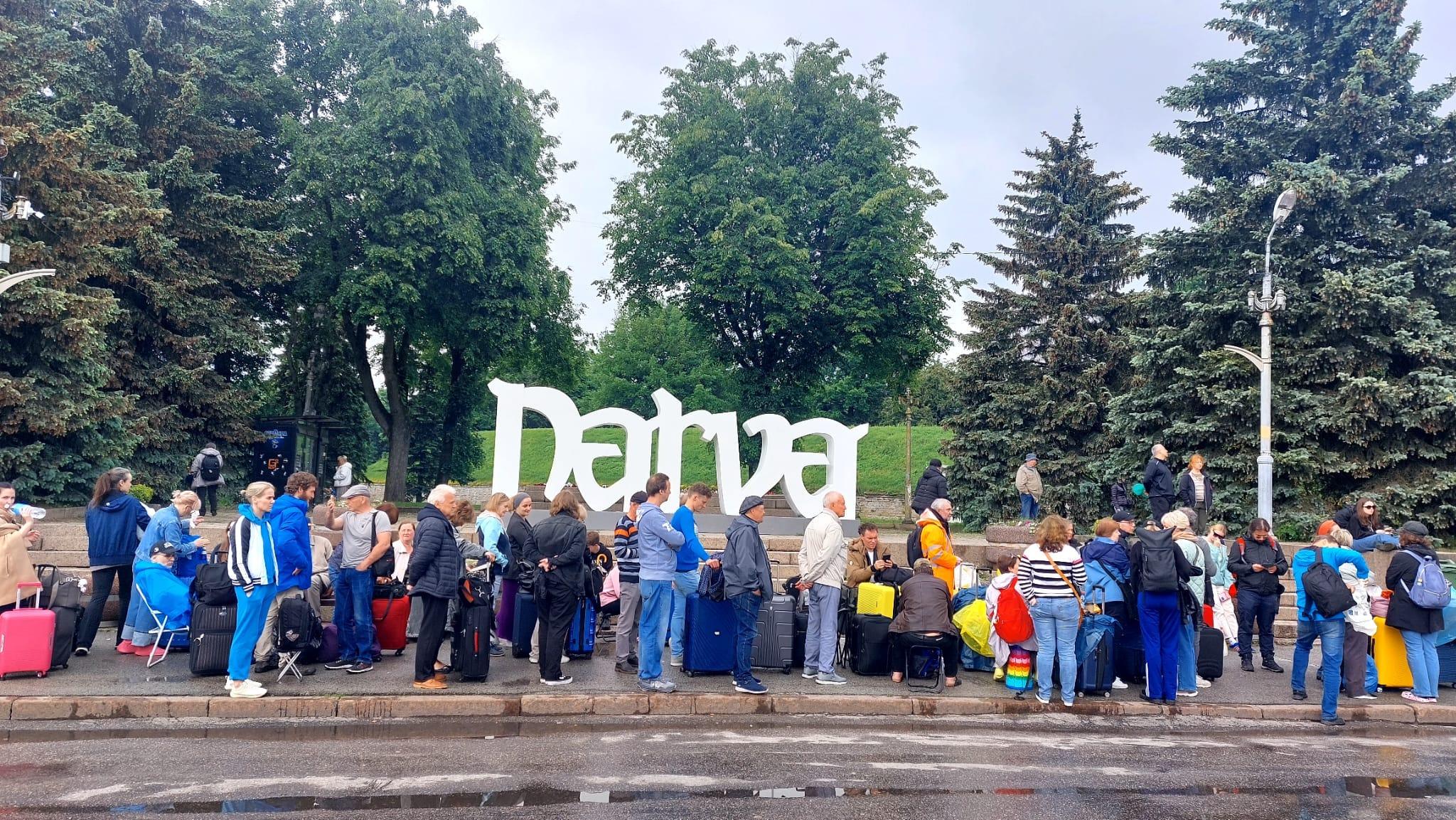 Em Narva, a fila é longa para o controlo fronteiriço que permite a entrada na localidade russa de Ivangorod, só sendo possível atravessar a pé. A circulação automóvel está permanentemente encerrada e a fronteira funciona apenas das 7h00 às 23h00 para a travessia pedonal, o que provoca longas esperas, que podem ir de 6 a 15 horas, dependendo do número de pessoas e dos itens para serem inspecionais pelos serviços da fronteira.